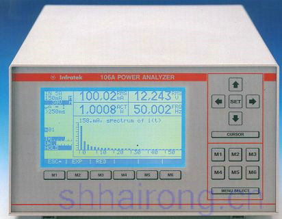 INFRATEK-106A高精度宽频带电力分析仪具有很宽的电流范围1mA-40A,此设计使得用户能测量低功率的情况,或一个空载的低功率因数的变压器,或者一个变频器驱动一个大功率的马达。