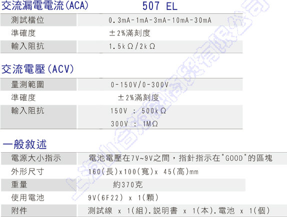 台湾标准电机SEW仪器仪表--507 EL AC Leakage Meter