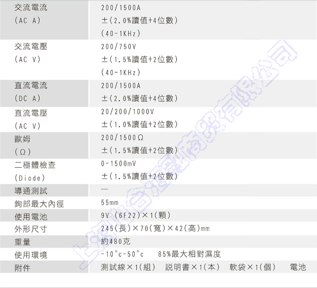 ACA 200/1500, +/- (2.0%rdg+4dgt) : 40 Hz - 1K Hz