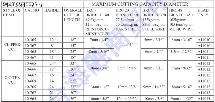 BOLT CUTTERS MAXIMUM CUTTING CAPACITY DIAMETER