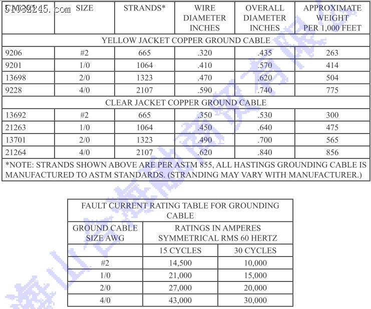 *NOTE: STRANDS SHOWN ABOVE ARE PER ASTM 855, ALL HASTINGS GROUNDING CABLE IS