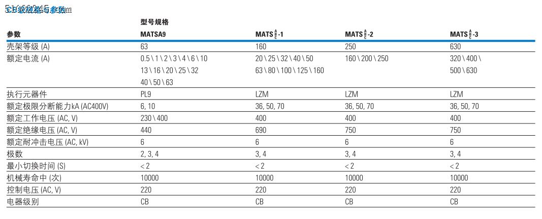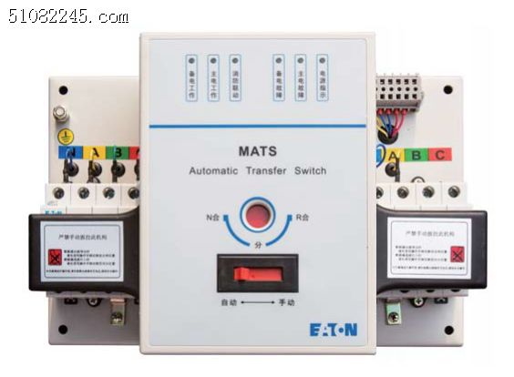 MATS系列双电源自动转换开关,采用伊顿的微型、塑壳断路器及负荷隔离开关,配以带机械与电气联锁的智能机电一体化操作与控制器组合而成。适用各个不容许断电的重要场所两路电源的自动检测与自动切换之用。