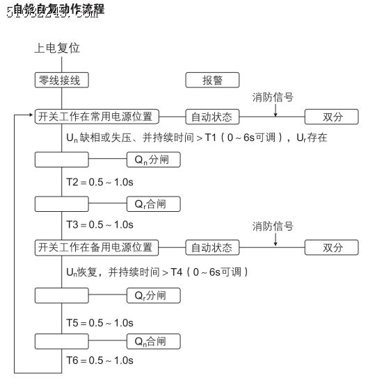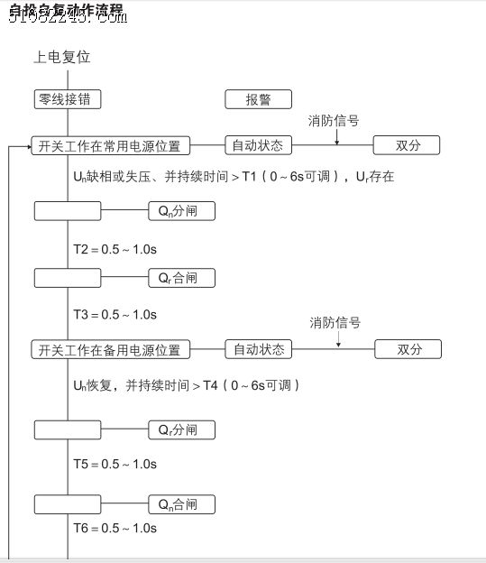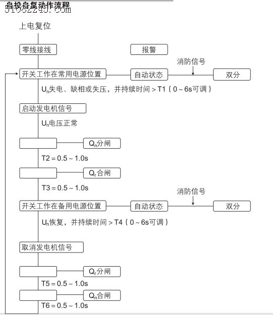 ● 当常用电源恢复正常时,又切换到常用电源工作,实现自投自复的功能。选择手动时,切断控制仪的电源,用手动操作旋钮进行常用、备用电源的分合操作。主要用于检修或装置工作 在 非 正 常 状 态 时 的 应 急 使用。