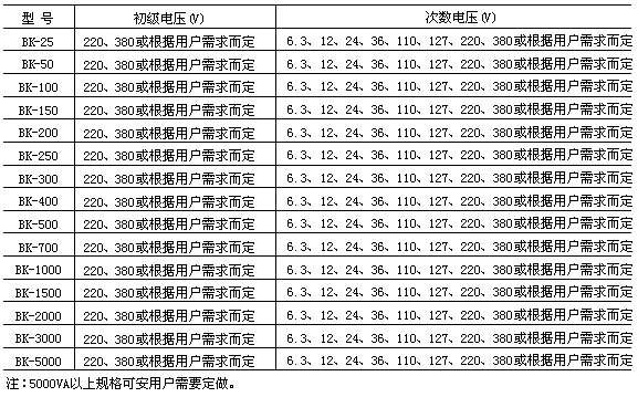 BK系列控制变压器适用于50~60Hz的交流电路中,作为机床和机械设备中一般电器的控制电源、局部照明及指示电源。