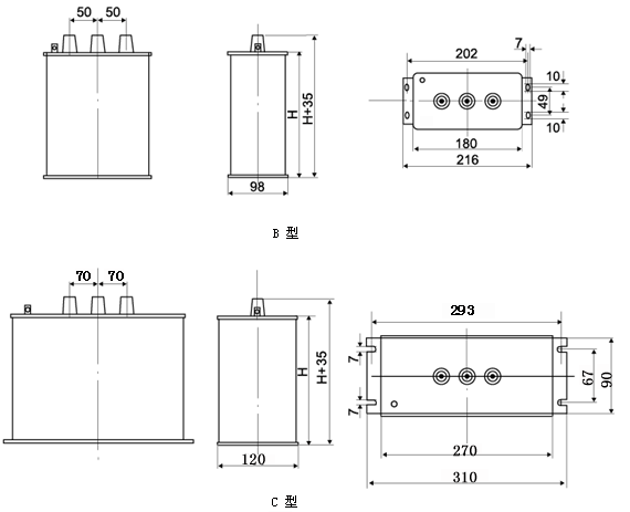 5、通风散热:设置两个以上的电容器时,间距>30mm以上,夏季温度较高时应采取有效的散热措施。