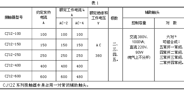 1、接触器的基本参数见表1,AC-2为基本使用类别,AC-4使用类别仅适用于接通与分断能力。