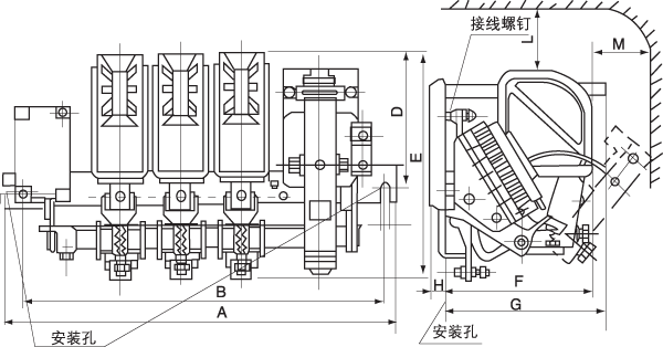 触头系统的动作,靠磁系统经扁钢传动,整个接触器的易损零部件具有拆装简便和便于维护检修等特点。