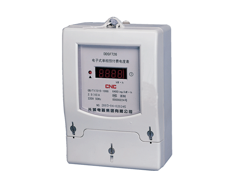 DDSF726单相电子式复费率电度表采用线性度好、KK性高的专用集成电路,应用表面贴装(SMT)技术设计而成,具有测量精度高、稳定性好、体积小、重量轻、功耗低以及寿命长、过载性能高并具有良好的电磁兼容性等特点。适于计量参比频率为50Hz的单相交流有功电能。可实现分时计价。