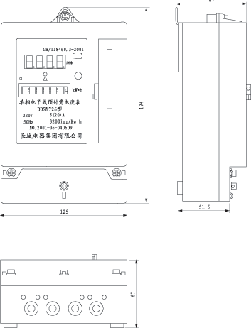 DDSY726单相电子式预付费电度表采用线性良好、KK性高的专用集成电路,应用表面贴装(SMT)技术设计而成,具有测量精度高、稳定性好、体积小、重量轻、功耗低以及寿命长、过载性能高并具有良好的电磁兼容性等特点。适于计量参比频率为50Hz的单相交流有功电能。可实现先付费后用电。 电度表应固定安装在室内,环境温度-25℃~+55℃,相对湿度不C过85%,且空气中不含有足以引起腐蚀的有害物质。 本产品设有脉冲信号输出端子,可方便检测。