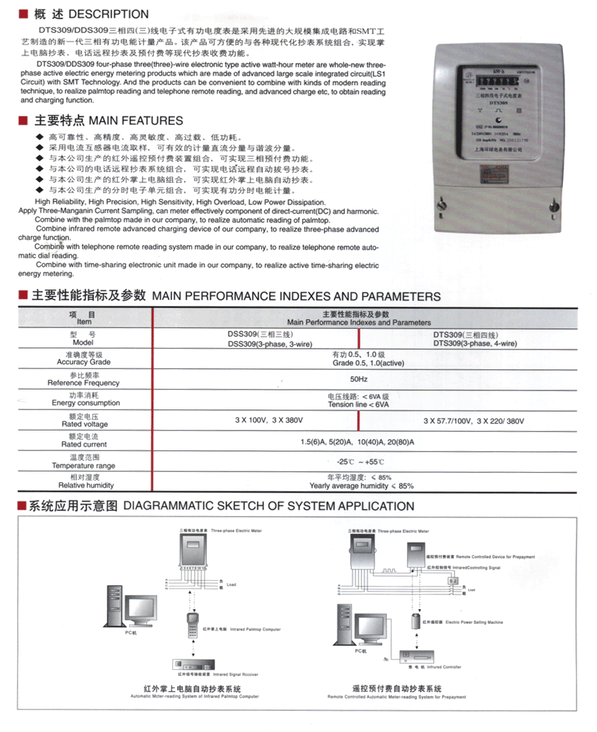 → DTS309/DSS309三相四(三)线电子式有功电度表