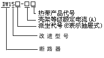 DW15-200、400、630万能式断路器 该断路器为立体布置形式,触头系统、快速电磁铁、左右侧板均安装在一块绝缘板上。上部装有灭弧系统,操作机构可装在正前方或右侧面。有“分”,“合”指示及手动断开按钮。其左上方装有分励脱扣器,背部装有与脱扣半轴相连的欠电压脱扣器。速饱和电流互感器或电流电压变换器套在下母线上。欠电压延时装置、热继电器或半导体脱扣器均可分别装在下方。
