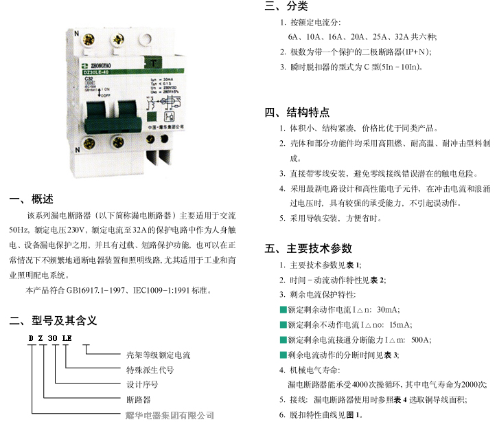 → DZ30LE(HDZ2LE)系列漏电断路器