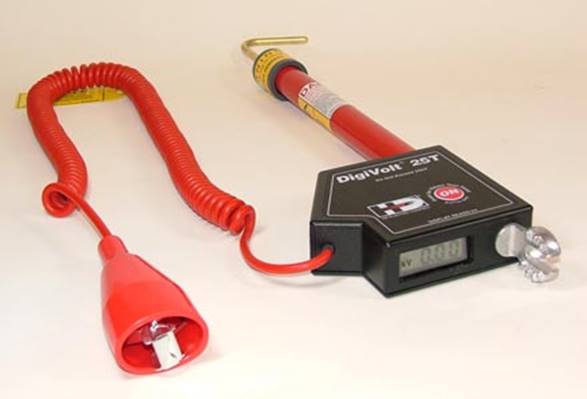 Digital Voltmeters & Phasing Sets The DigiVolt® series of digital voltmeters and phasing sets is designed to take voltage measurements and perform phasing applications on system voltages up to 80kV. Universal Voltmeter Kit : DVM-80UVK The DVM-80UVK is a new and exciting addition to our phasing voltmeter product line. As the largest supplier of innovative voltage testing and measuring devices in the market today, we have expanded the features of our popular industry-proven DVM-80 series voltmeter and packaged it with an assembly of accessories, offering it as a complete, ready-to-use universal voltmeter kit. Priced competitively as a complete kit, this may be the best value in the market today. The DVM-80UVK is a complete kit that includes a DVM-80UVM dual stick phasing voltmeter with overhead hook probes for use up to 40kV, add-on resistor sticks for measurements up to 80kV, underground bushing probes, cable fault tester, voltmeter proof tester, shotgun hotstick adapters and a soft-sided, multi-functional carrying bag with built-in bucket hooks. For more information on the Universal Voltmeter Kit click this link to visit the Universal Voltmeter Kit webpage. Digital Voltmeter : DVM-25T The DVM-25T is a compact, high accuracy single stick voltmeter with capacitive test point mode and ground lead. The DVM-25T measures voltages up to 25kV and can be used in both overhead and underground applications. Digital Voltmeter & Phasing Set : DVM-5000V The DVM-5000V is a digital voltmeter/phasing set for low voltage applications from 10V up to 5,000V. The DVM-5000V can be used in both overhead and underground applications when used with the required applicable length hotsticks. The digital meter displays 4-digits, showing the true RMS voltage on the conductor. No decimal points show on the display, only the voltage reading. Fixed contact probes on the end of each stick allow for direct contact voltage measurements. Digital Voltmeter : DVM-80 The DVM-80T is a compact, high accuracy dual stick voltmeter and phasing set with capacitive test point mode and connecting cord. The DVM-80 and DVM-80T units measure voltages up to 40kV and up to 80kV with a pair of optional add-on resistors. The two-stick design can be used in both overhead and underground applications. The DVM-80 units incorporate Phase Accurate Technology, which makes all voltage readings, whether made from line-to-line or line-to-ground, accurate and repeatable to within 1% +/- 3 counts. Available Digital Voltmeters And Phasing Sets