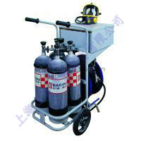 • 用于长时间工作的自给式呼吸装置。带有2套呼吸装置(面罩+供气阀),绕有30米软管的轮盘,4个充装了30MPa压缩空气的气瓶 • 通过不同的选择可装配含2L逃生呼吸器的逃生装置 • 逃生装置内涵自动气源切换阀,在出现意外的情况下自动切换至逃生呼吸器