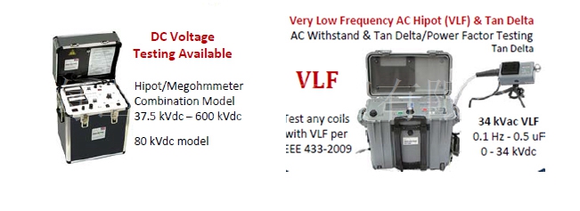 电动机和变压器经常需要对绕组和其他部分的绝缘耐压性能进行测试以符合国家规范或达到工作要求。美高测提供设备可以用来进行直流耐压、工频耐压、介损角、功率因数、和局部放电等项测试。产品的体积小,集成度高,KK耐用。这些产品适用于常见的2.4KV-35KV的各种变压器和电动机的测试。输出容量也可以达到常见负载容性电流的要求。建议按Amps=2πfCV来测算设备输出电流