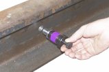 膨胀螺丝锁上液压工具拉伸的部件将膨胀螺丝衬筒的部位放入铁轨孔中.