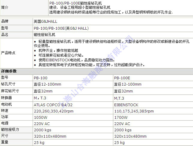 PB-100/PB-100E 磁性座钻孔机(日制)