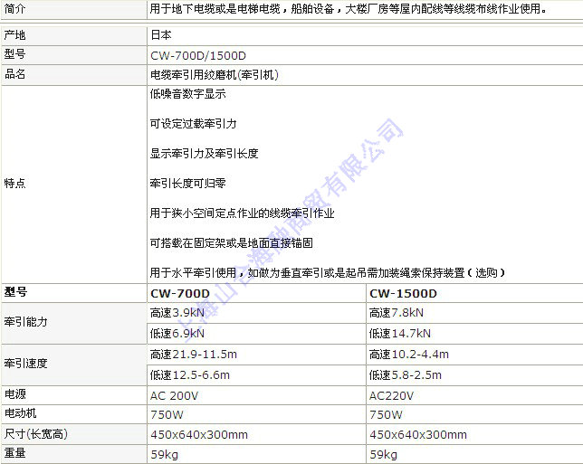 CW-700D/CW-1500D 电缆牵引用纹磨机(日制)