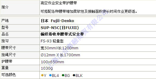 SUP-N5C 编织卷收单腰带式安全带(日制)