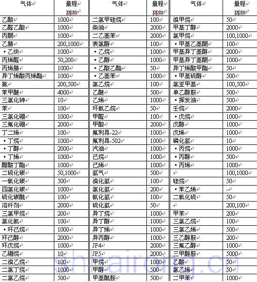 范围内必须另外在仪器种安装固体探头,每个固体探头仅能够测试一种气体。