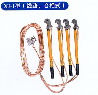 使用范围:户外低压线路,个人保护用 接电夹:3个 软铜线规格:3根×16平方毫米+1根×16平方毫米 软铜线长度:3根×0.9M+1根×2.1M |  伸缩式操作棒:二节式伸展长度4050 收缩长度2100 三节式伸展长度4150 收缩长度1550 接地软铜线:1根×50平方毫米 接地软铜线长度:1根×8M | XJ系列携带型短路接地线主要参数: