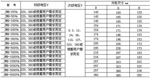 JMB型系列照明变压器适用于交流50~60Hz,电压至500伏及以下的电路中,作为机床及其它设备的局部照明灯电源。