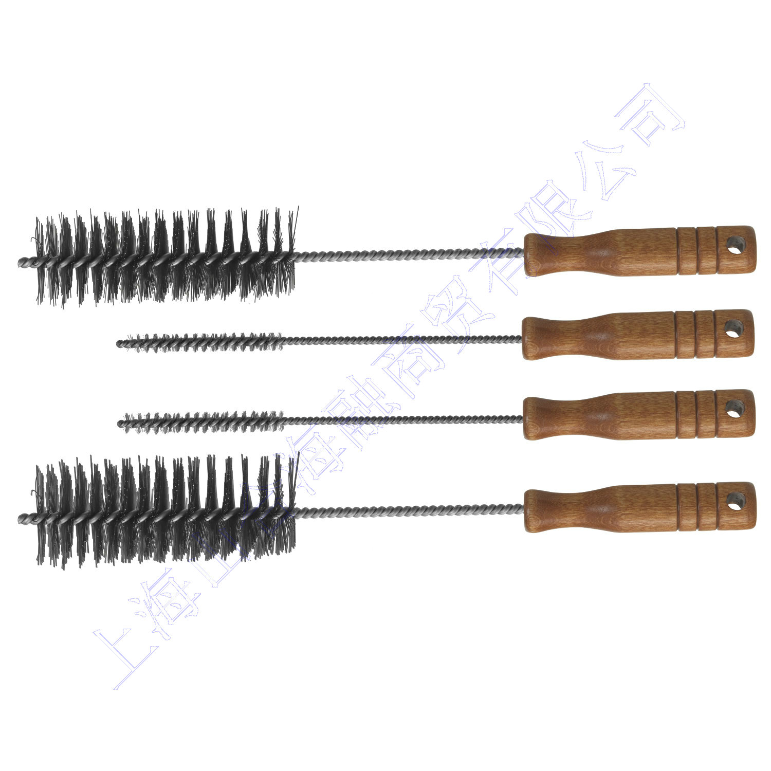 木质手柄连接半弹性钢铁条连杆,方便插入缆托口清洁。