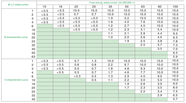 Rated breaking capacity: C characteristic curve ■Instantaneous trip