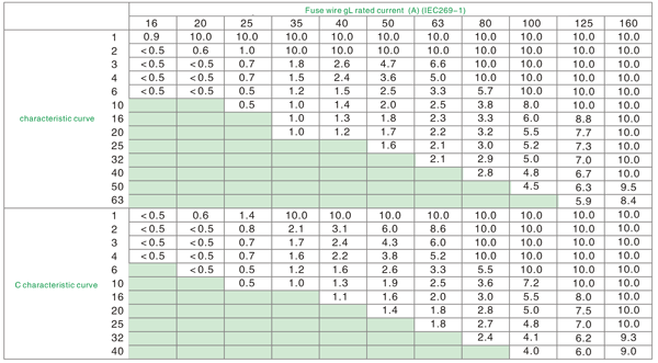 function Fuse wire D01, D02, D03 selectivity Fuse wire NH-00 selectivity