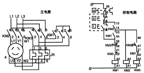 起动器由三台交流接触器,一只空气延时头、一只辅助触头组成(仅CJX2-32及以下规格)安装在一块底板上,配以适当导线。