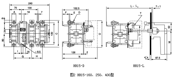 | 2、HH15A系列隔离开关外形及安装尺寸见图4 ~ 图5及表5 |