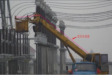 柔性传感器固定在高空作业时Z容易接触到高压线的位置,利用柔性传感器感应电信号,并发送到主机。