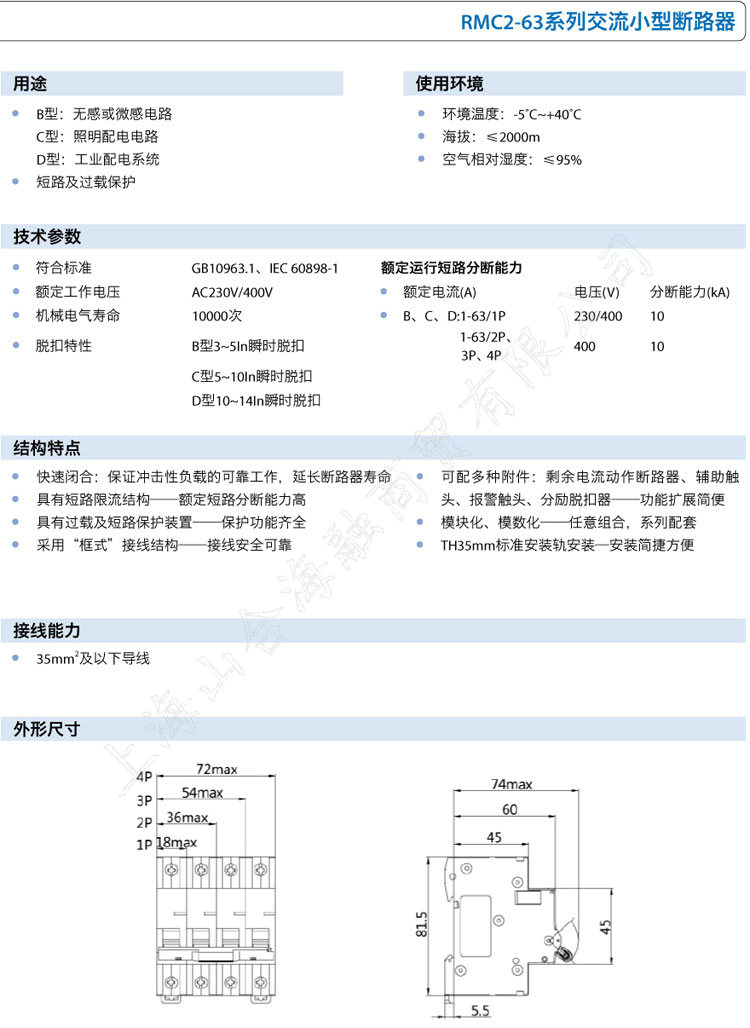 上海人民电器厂RMC2-63系列交流小型断路器
