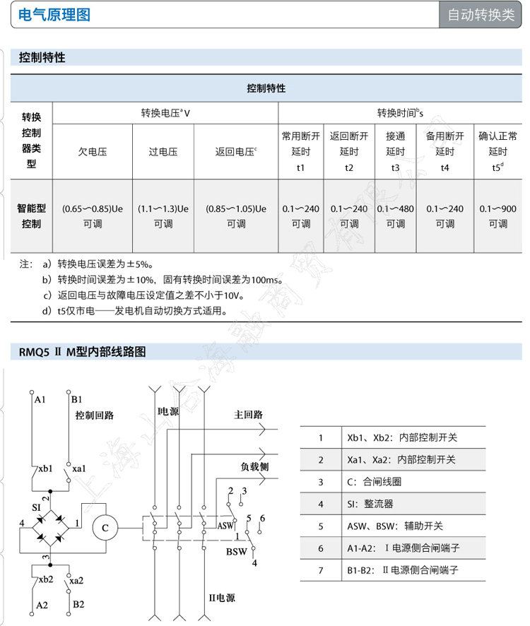 RMQ5系列自动转换开关(以下简称转换开关)属于PC级,主要适用于交流50Hz,