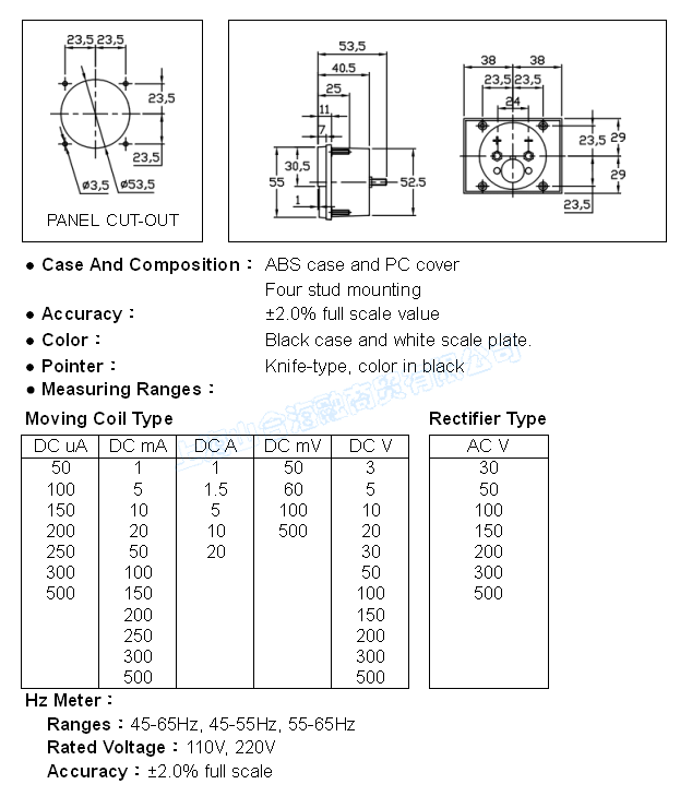 台湾标准电机SEW仪器仪表--ST-75 Panel Meters Switchboard Type T Series