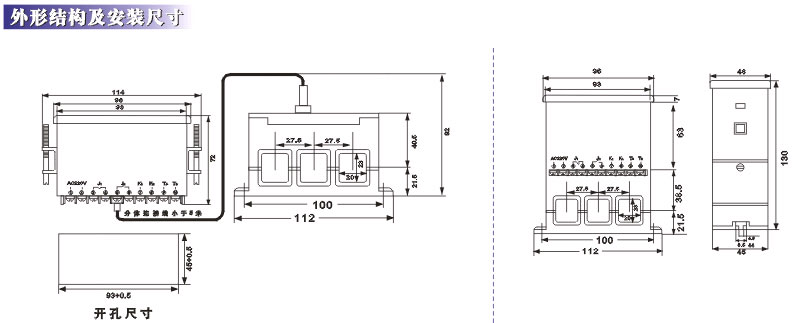 型 号 YCQR3-A型 整体式可实现对电机监测、监控、保护及就地显示等功能。 YCQR3-B型 分体式由主体单元及电流传感器独立组成,该型保护器适用于主体置于板后面显示在面板上。可完成对电机的监测、监控、保护及就地显示等功能,其主体单元与电流传感器之间的距离为≤5m。 YCQR3-C型 整体式具有WDB-A型功能外、并具有RS485通讯接口,可实现远程通讯。通讯距离≤1200m。 YCQR3-D型 分体式 具有WDB-B型功能外、并具有RS485通讯接口,可实现远程通讯。通讯距离≤1200m。