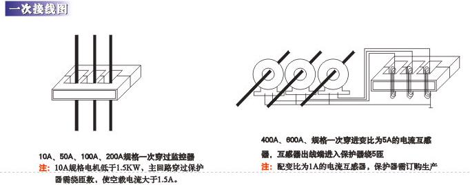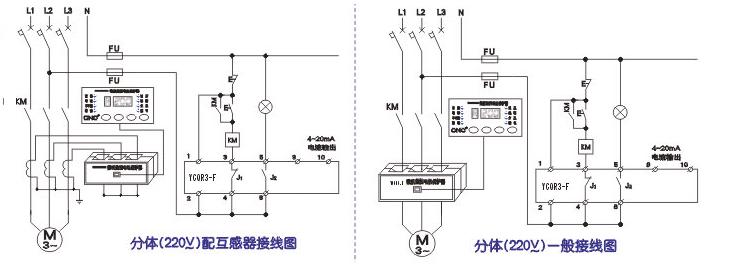 YCQR3-F型 分体式适用于电机监测、保护及就地安装显示,由于体单元及电流传感器组成,主体单元与显示单元这间距离≤5m,具有固定某相电流4~20mA信号输出。