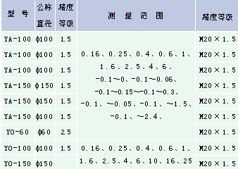 → YO型系列氧气压力表 YA型系列氨气压力表