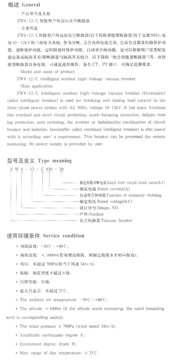 【 产品名称 】 ZW8-12/C系列智能型户外高压真空断路器